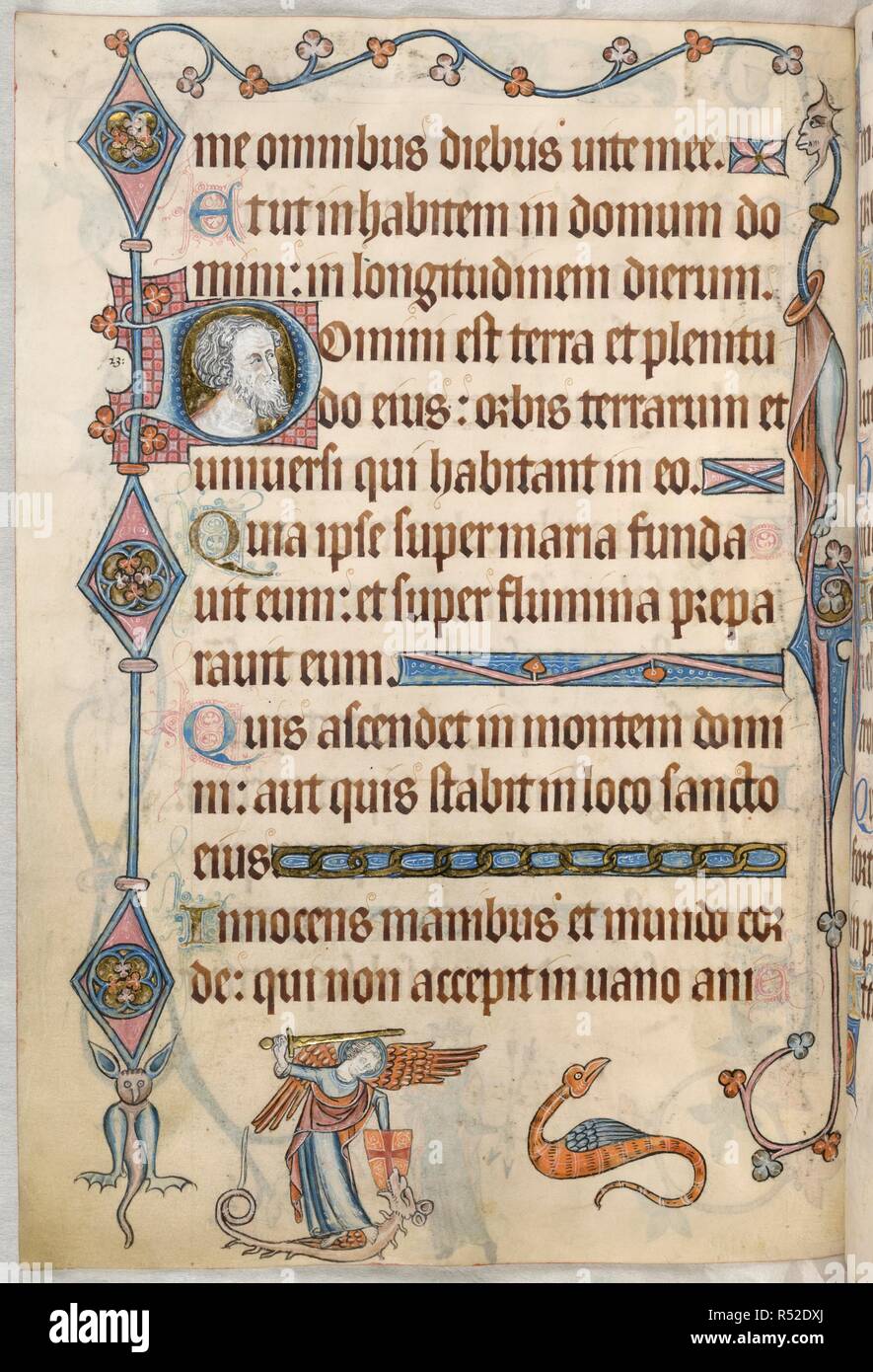 Psalm 23 St Michael Luttrell Psalter England East Anglia Ca 1325 1335 Ganze Folio Ende Von Psalm 22 Psalm 23 Beginnend Mit Der Ersten D Kopf Eines Bartigen Mannes Grenze Mit Grotesken Im