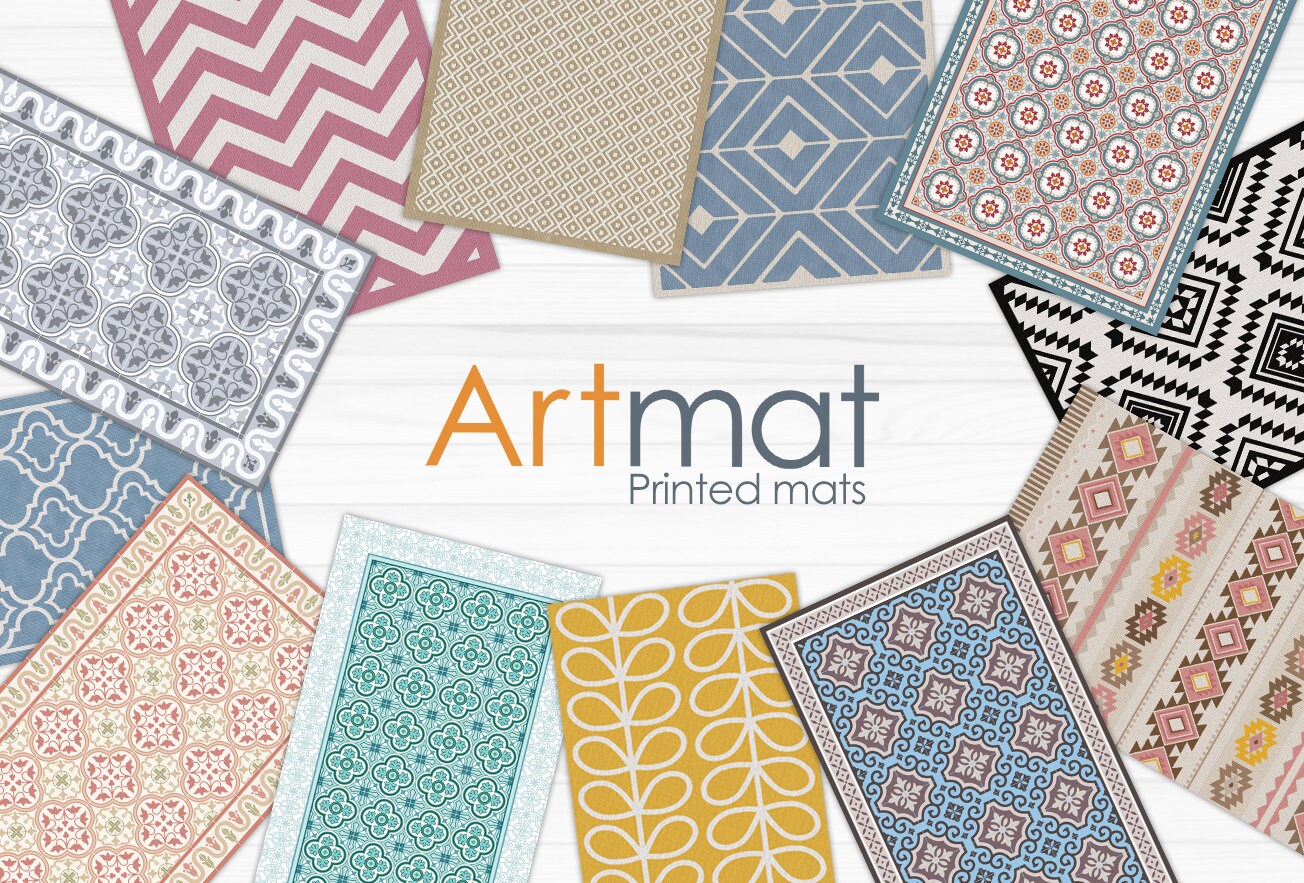 Green And Beige Vinyl Runner Rug With Spanish Tiles Design Etsy Uk
